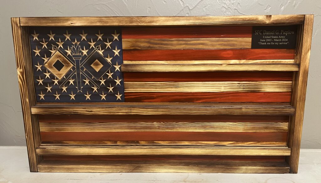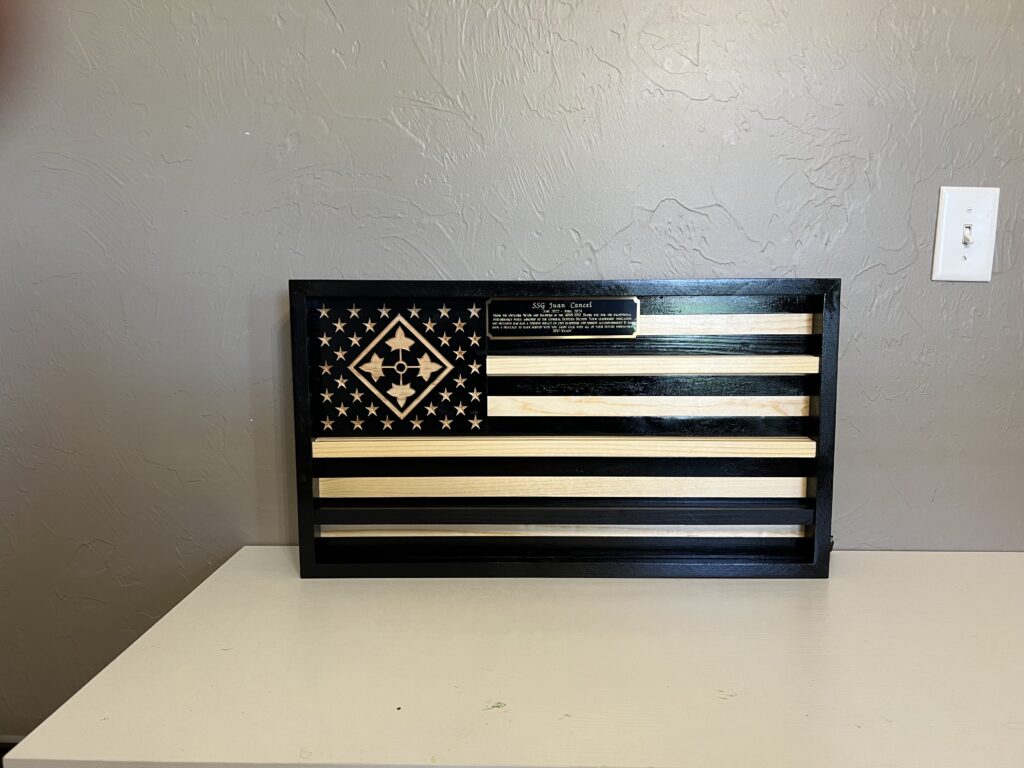 We also do custom woodwork as well! Looking for a customized plaque, coin rack, flag, etc.? We’ve got you covered! Making your friend, partner, or coworker feel special and appreciated has never been easier.